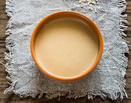 To prepare sauce, take half cup sesame seed paste, ¼ cup lemon juice, 2 tbsp yogurt and 2 cloves garlic. Mix everything together and cook it in pan.